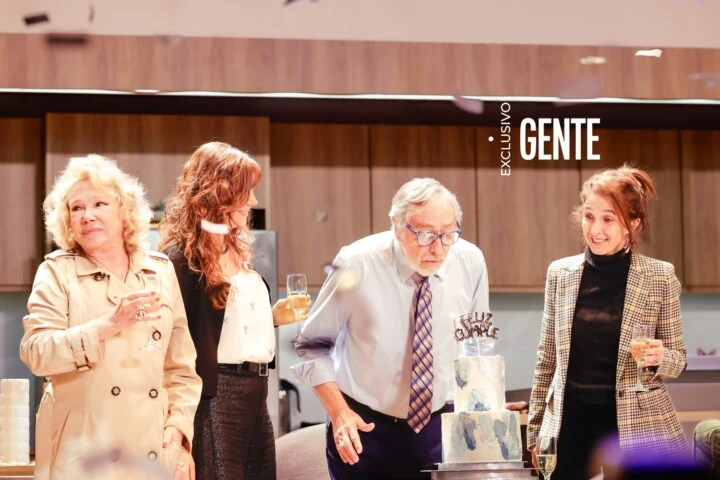 Luis Brandoni celebró sobre el escenario sus 85 años.Con los aplausos del público, Luis Brandoni sopló las velitas.Fue al cierre de la obra de teatro que protagoniza con Soledad Silveyra.Luis Brandoni junto a su pareja, Saula Benavente.La guionista y el actor están juntos desde el año 2013.Luis Brandoni junto a su hija Micaela Brandoni (izq.) y su pareja, Saula Benavente (der.).La felicidad de Luis Brandoni por sus 85 años, junto a su hija Micaela Brandoni.Luis Brandoni sopló las velitas por sus 85 años juntos a su pareja, Saula Benavente.Con la ovación del público, el actor hizo un brindis por su cumpleaños.Fue un momento festivo con todo el público que fue a verlo actuar.El público le cantó el feliz cumpleaños a Luis Brandoni.Así celebró sus 85 años Luis Brandoni.Hubo lluvia de papelitos en medio del festejo al cierre de la obra de teatro.Así ingresaban al escenario Micaela Brandoni y Saula Benavente para saludar al cumpleañero.La alegría de Luis Brandoni con la emocionante sorpresa por su cumpleaños.Soledad Silveyra organizó al público para el canto del feliz cumpleaños.Entre el público hubo quienes se acercaron a Luis Brandoni con obsequios.Luis Brandoni les dedicó palabras de agradecimiento a su público presente.La reconocida dupla actoral saludó al público por el gesto de cariño en este cumpleaños.El agradecimiento de Luis Brandoni con Soledad Silveyra por el cariño en su cumpleaños.