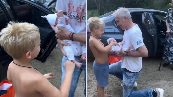 Momentos después, el conductor buscó a Milenka, quien estaba en su sillita adentro del auto, y se la alcanzó a su primogénito. “Que chiquita es”, fue la expresión que repitió el nene y los demás familiares presentes.