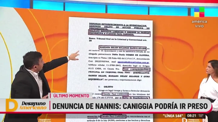 En ese momento, leyeron en vivo el pedido formal que hicieron en la Justicia: «Se revoque la libertad de Claudio Paul Caniggia, se ordene la prisión preventiva y se disponga su inmediata detención«. Luego, reveló: «El hostigamiento que habla Mariana Nannis se refiere puntualmente que Caniggia apuntó contra su amiga y principal testigo».
