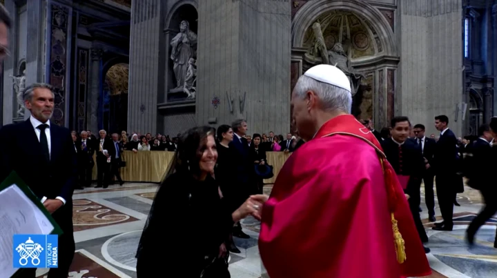 Por lo que se pudo ver en la transmisión de Vatican Media, Zorreguieta lució un vestido largo, que cubre completamente los brazos y las piernas. Además, tiene una mantilla negra, con encaje, cubriendo su cabeza, un bolso negro y unos anillos de plata.