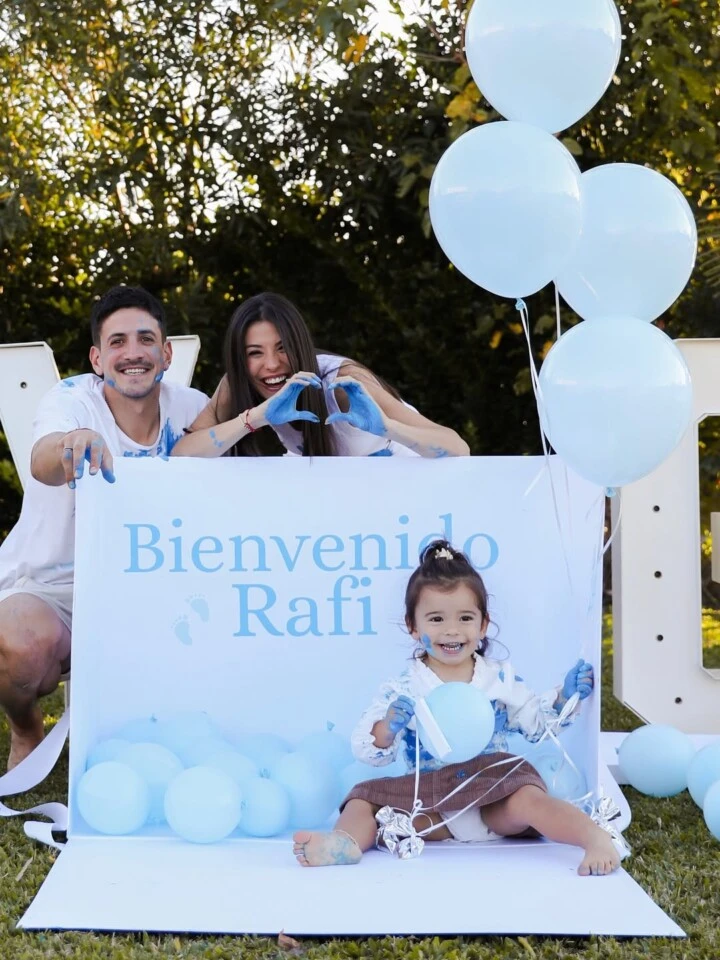 A su vez, a través de sus historias de Instagram, la China compartió un video del día en que confirmaron que tendrían un varón. En un momento, la pareja junto a su hija abrieron una caja, de la que salieron varios globos azules y adentro decía ‘bienvenido Rafi’. «Somos 4, se hizo realidad«, escribió emocionada la conductora en la historia.