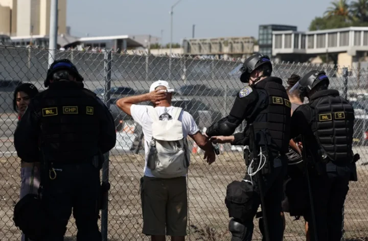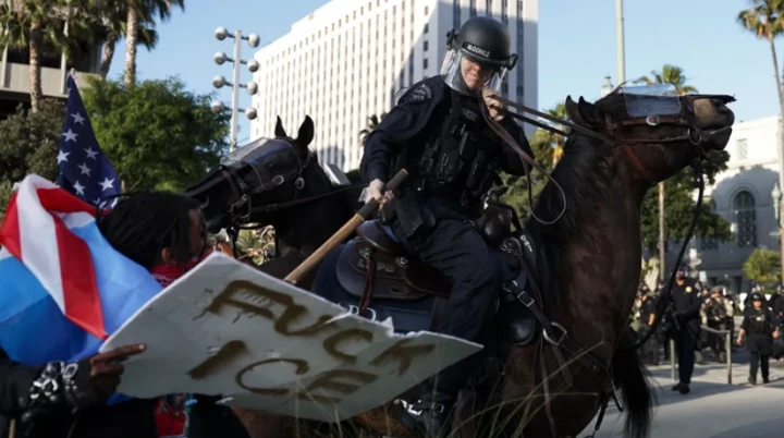 El primer fin de semana, las protestas crecieron con enfrentamientos. LAPD (Departamento de Policía de Los Ángeles) usó gas pimienta, granadas aturdidoras y balas de goma: más de 600 cartuchos no letales se utilizaron el 7 de junio. Se reportaron saqueos, decenas de arrestos y al menos tres periodistas heridos.